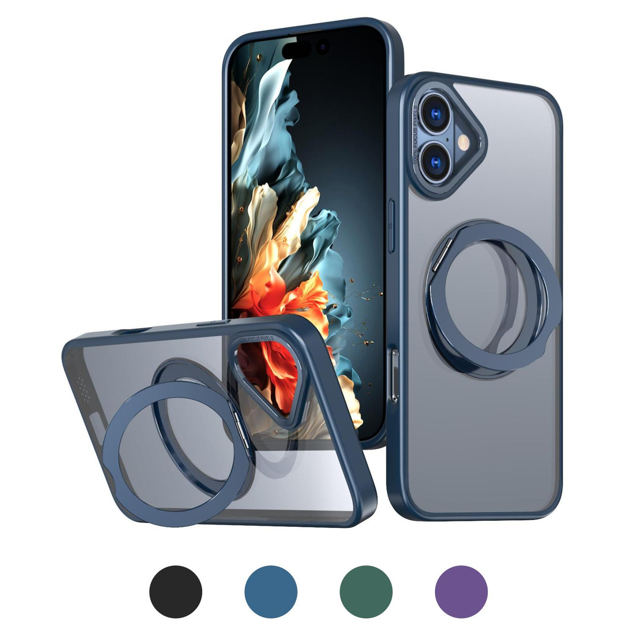 - Innovative design featuring a seamlessly integrated rotatable ring (MagSafe compatible) embedded in the back — supports 360° horizontal and 140° vertical rotation.
