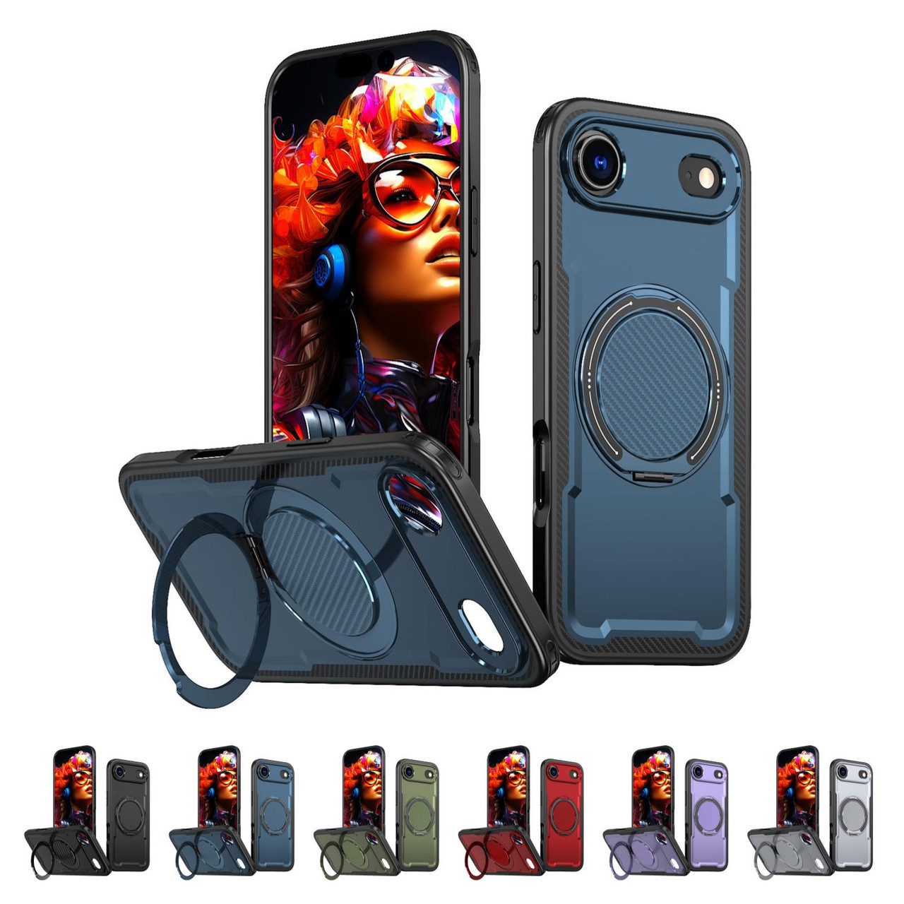- Innovative design: PC and rubber components are moulded into a single integrated case, featuring a seamlessly built-in rotatable ring (MagSafe compatible) on the back. Supports 360° horizontal and 140° vertical rotation.